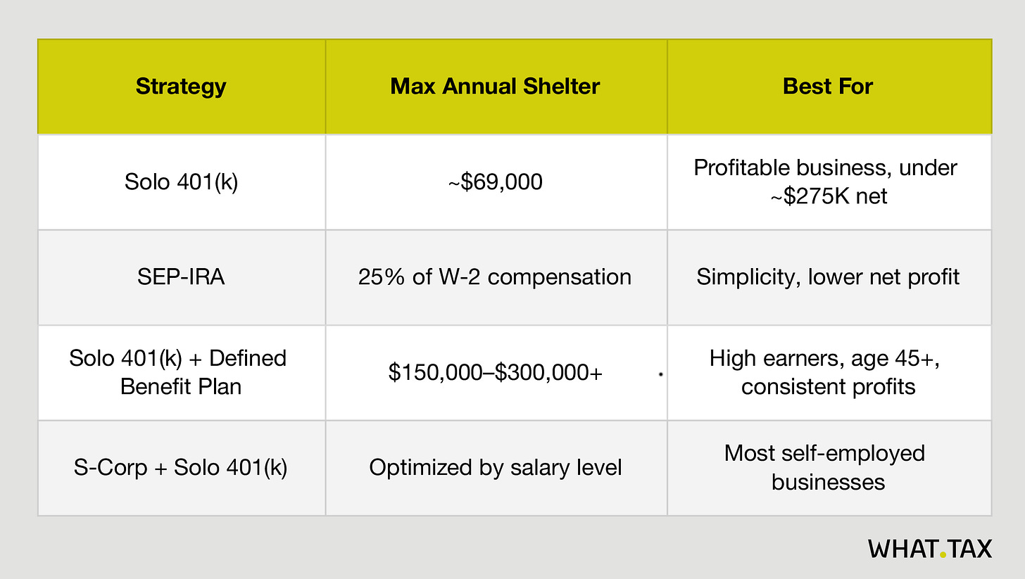 Close it deliberately. Start with one decision this week: the S-Corp election, the Solo 401(k) application, or the conversation with your accountant about contribution limits. One decision compounds into the next.
